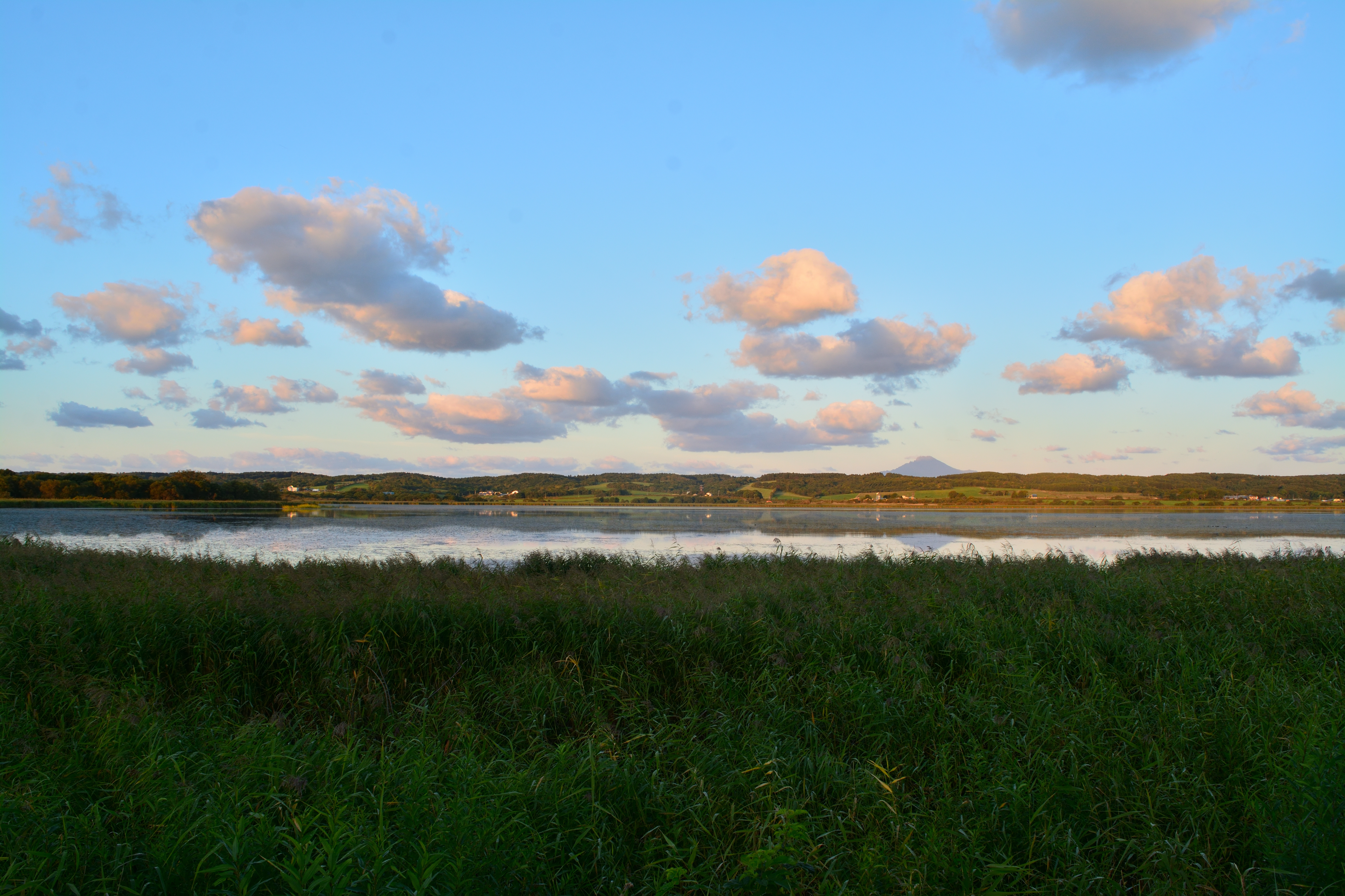 兜沼に戻る道を歩いていると、前方の路上にエゾシカがいる。藪の中に入ったので、そばまで行っていみると、オオイタドリの葉を食べていて、こちらに気づかない。シャッターチャンスを待っていたが、そのまま藪の奥へ入ってしまった。後を追って藪に入るがエゾシカの姿はすでにない。足元でガサゴソと音がしたので、見てみると小さなキツネが僕を見上げている。カメラを向けずにしばし見つめあっていたが、踵を返して藪の奥に消えて行った。藪のすぐ先には牧草地が迫っていた。独り立ちしたばかりなのだろうか。記録には残らなかったが、その愛らしさは今も記憶に残っている。