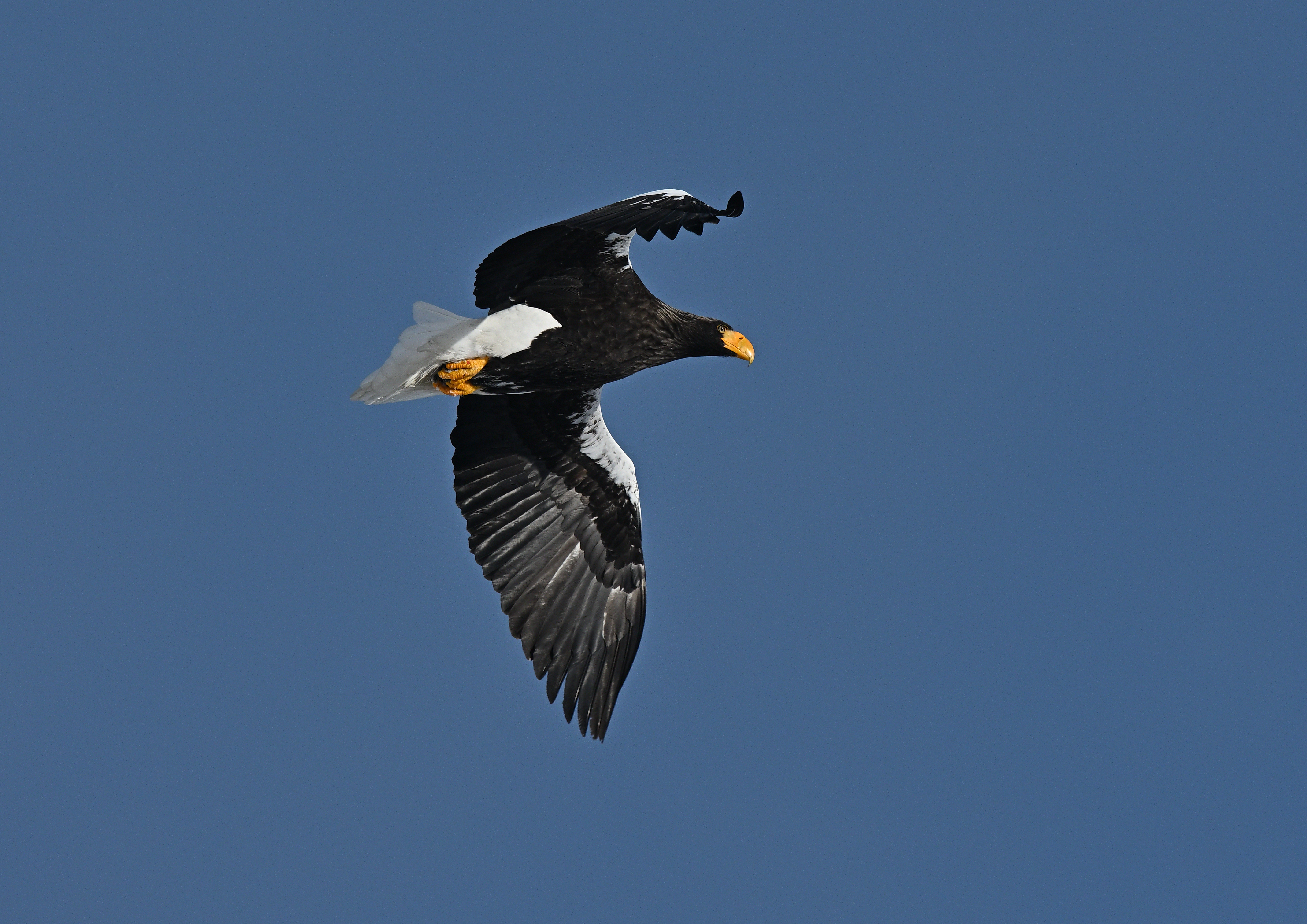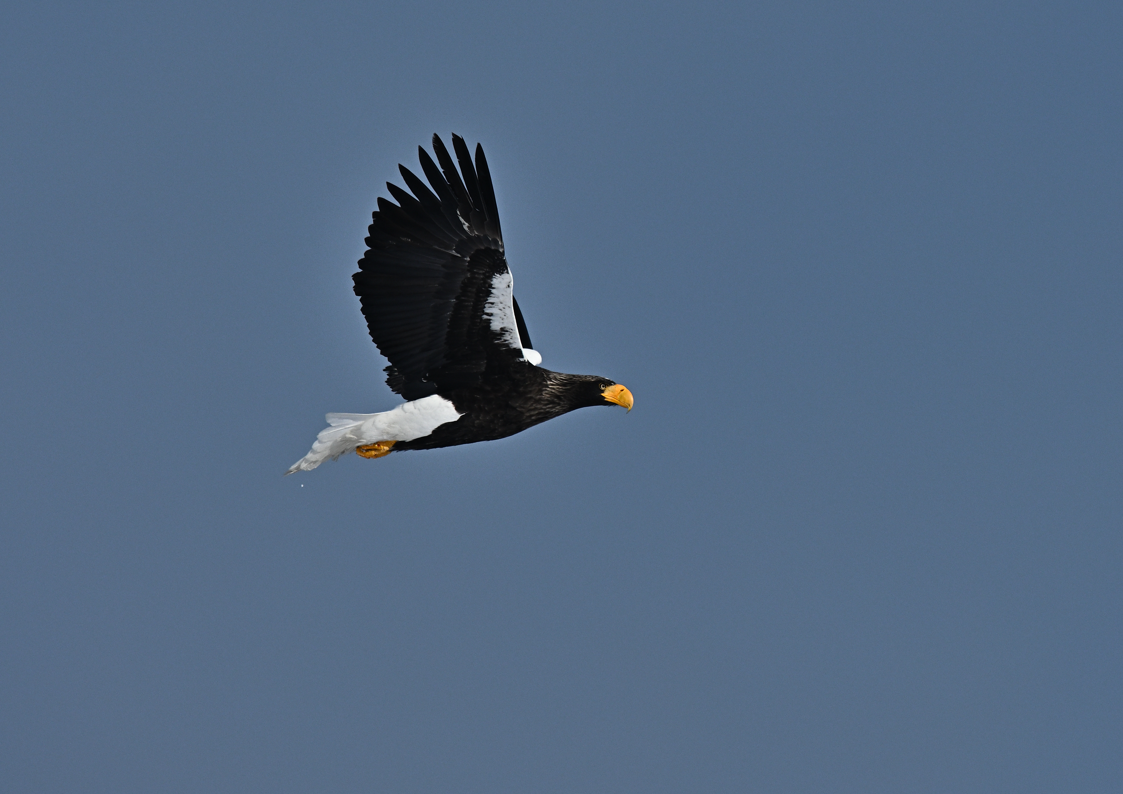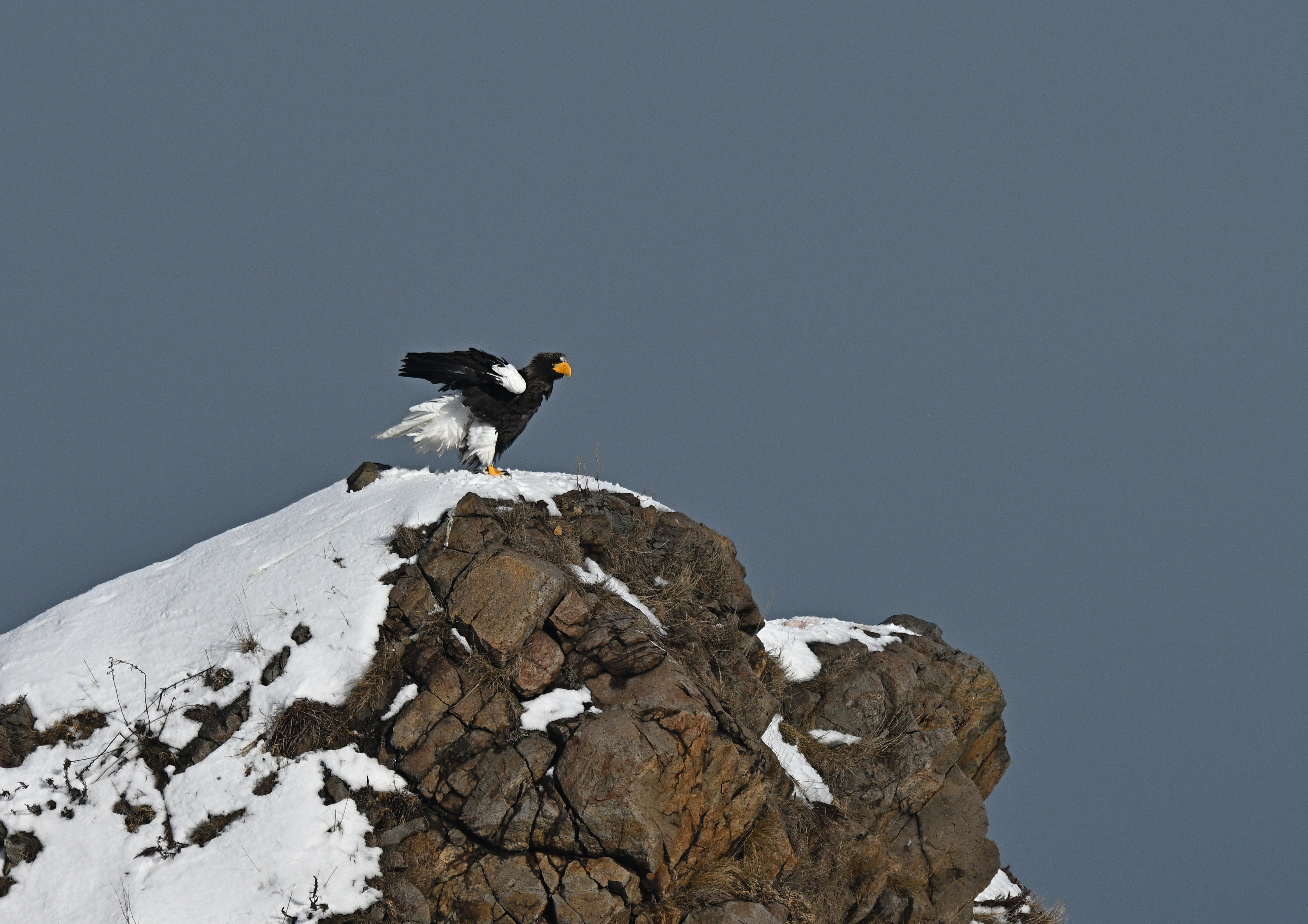 岩から飛び立った。旋回して風に乗って高度を上げ、遥か東の空に消えて行った。その後、オジロワシも同じ岩頭にとまり、下赤岩山の方に消えた。