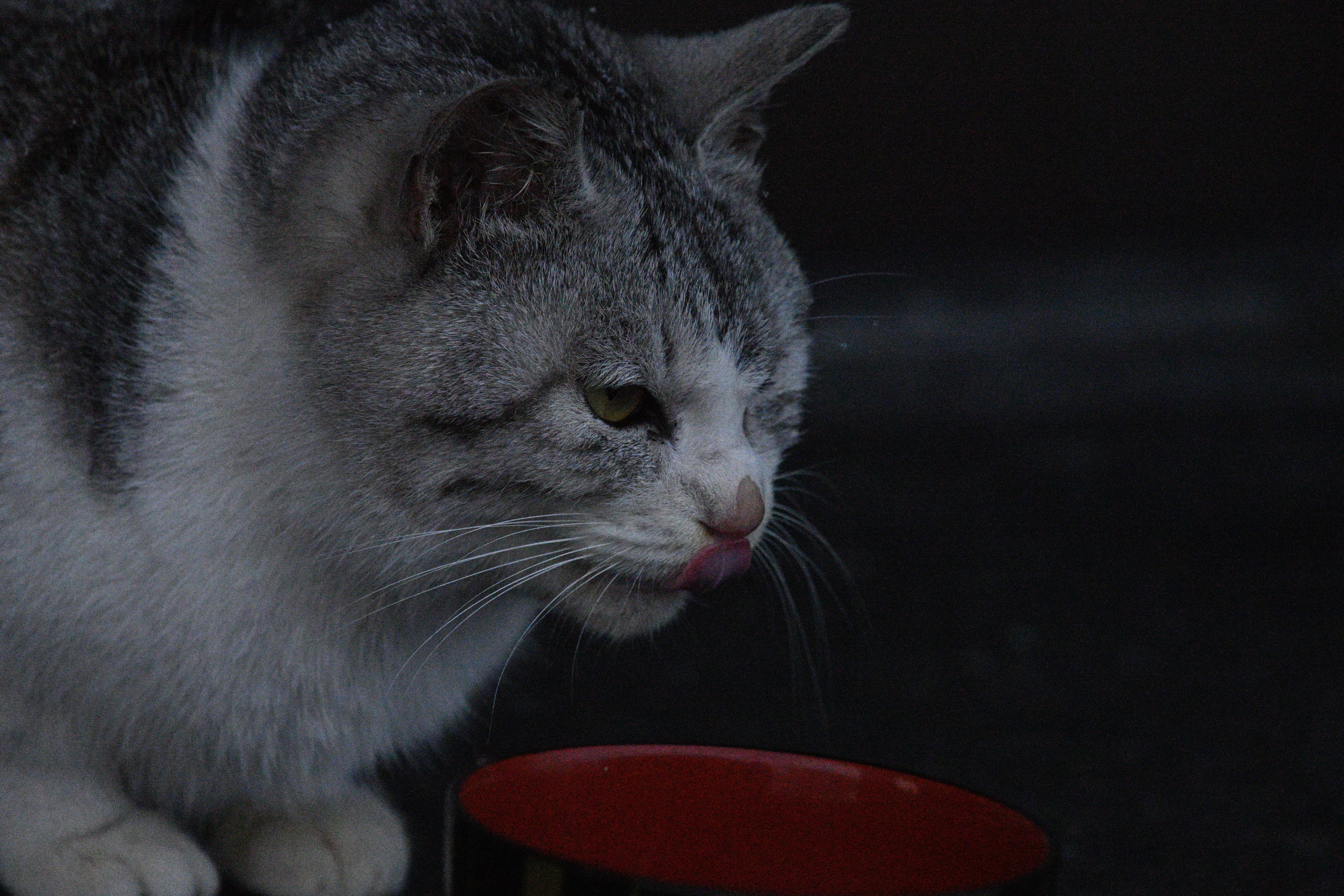 灰白色の猫は待っていた。他の猫も一緒に食べだした。
