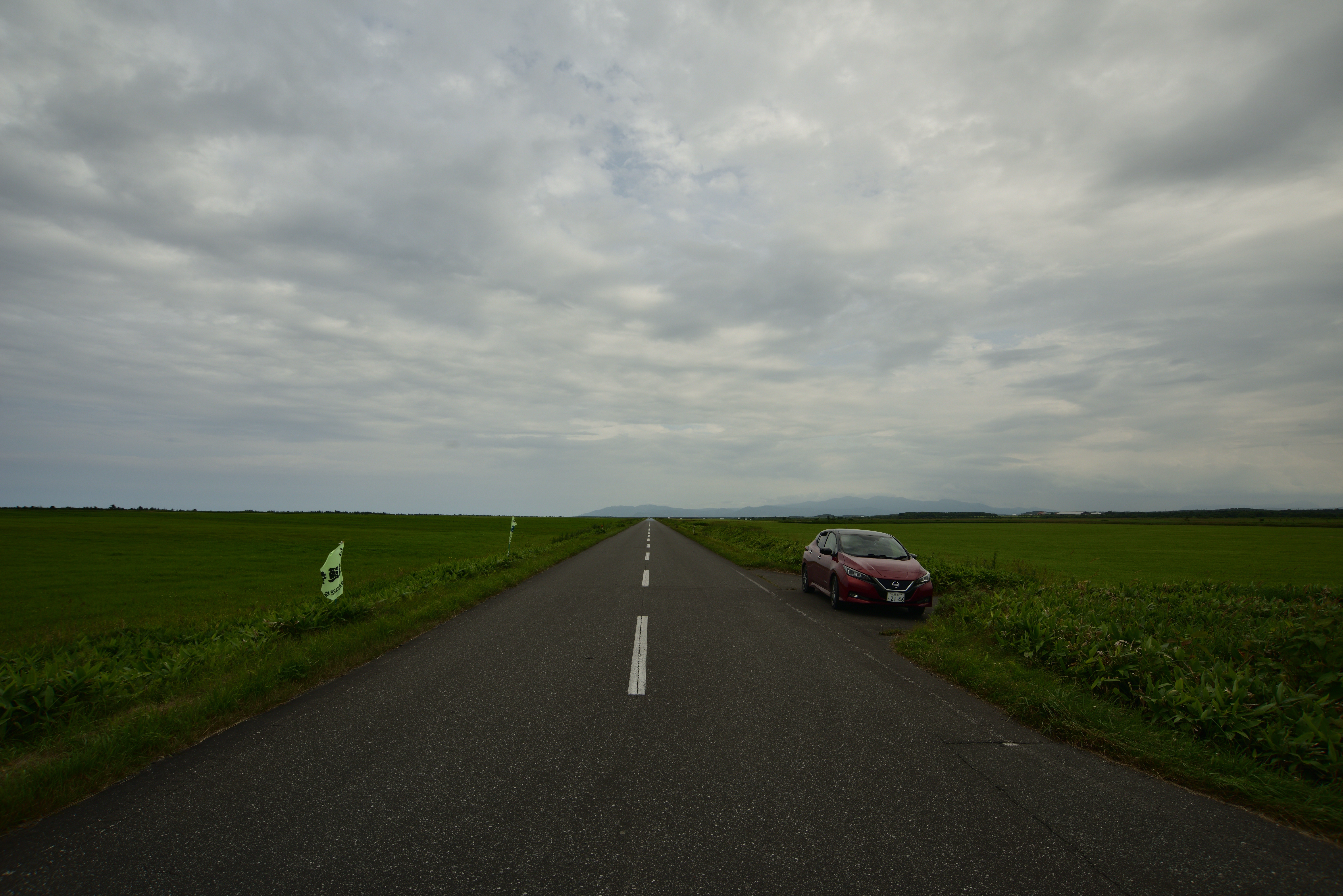 再び猿払村に向かった。見渡す限りの平原に直線道路が続いていることで有名な、エサヌカ線を通った。
