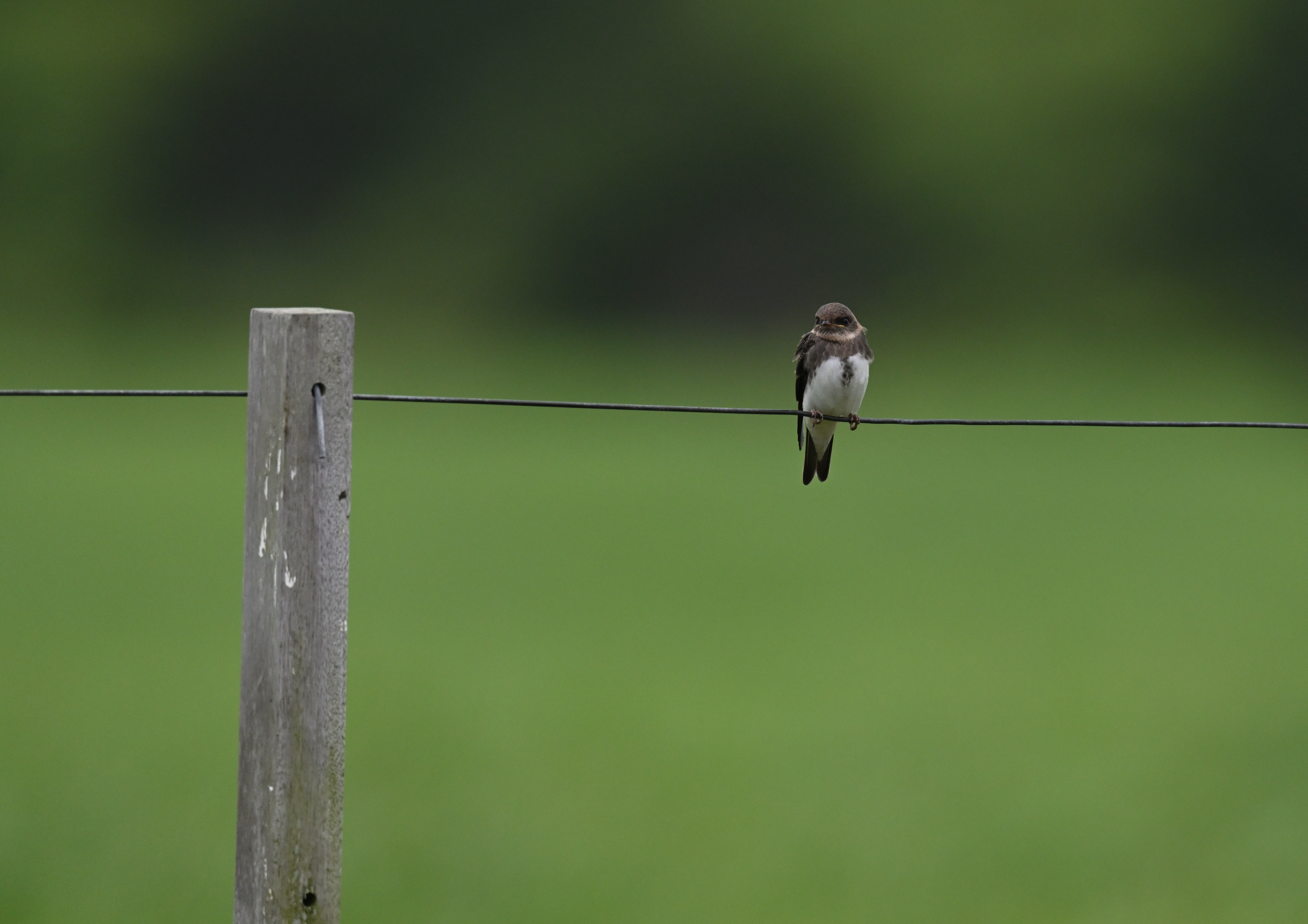 隣接するキャンプ場の針金状の柵には、ツバメの大群が止まっている。巣立ち雛が集まっていることからか、百羽以上はいるだろう。砂浜海岸が近く、海岸段丘の土壁に穴を掘って営巣するショウドウツバメかなと思ったが、やはりそうだった。